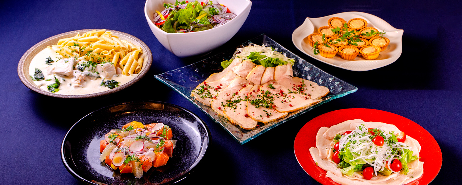 3日前までオーダー可能なお手軽プラン。お届けお渡しのみ、なので気を使わないご友人やご家族だけの気軽なお昼や夕食、オフィスでのランチ会にもおススメです。野菜もお肉もお魚も程よく、バランス良くお召し上がり頂けます。ちょっとおしゃれな使い捨て皿でお持ちしますので、そのままテーブルに並べられ回収のお手間も御座いません。